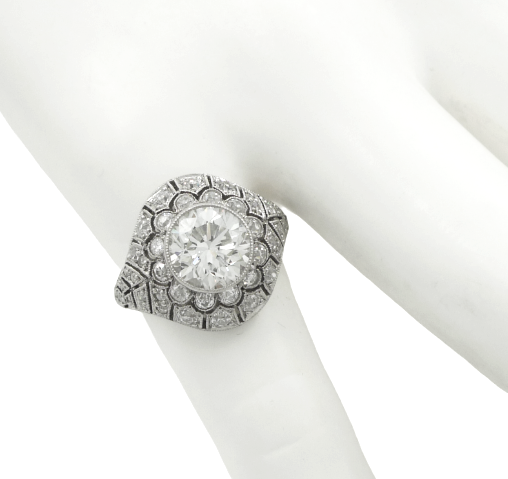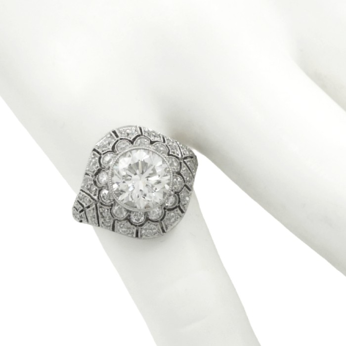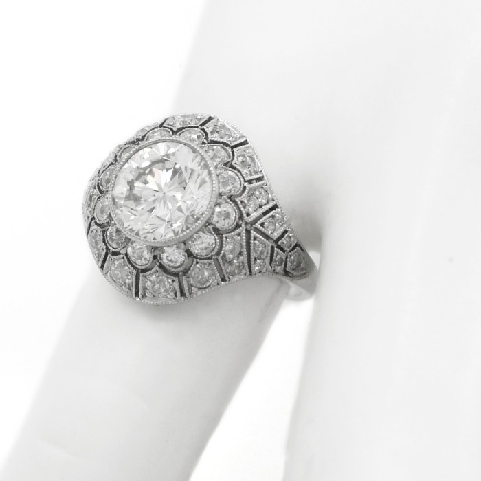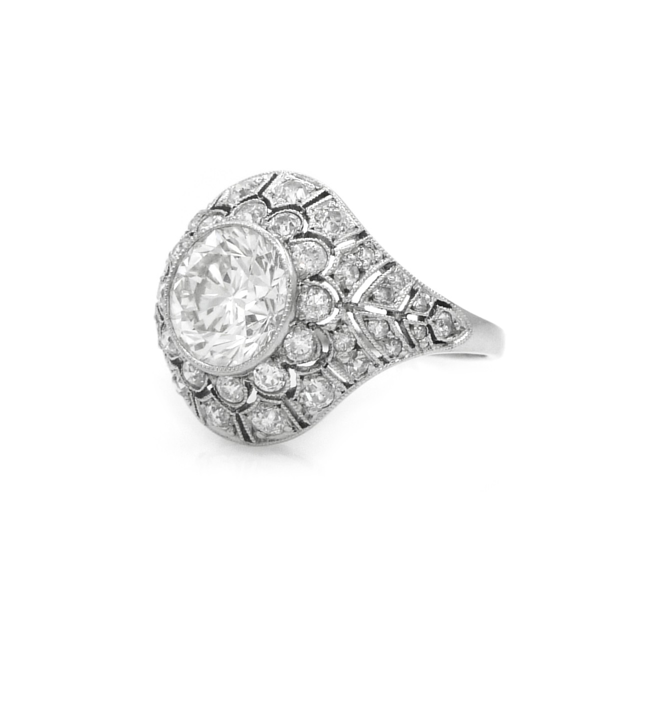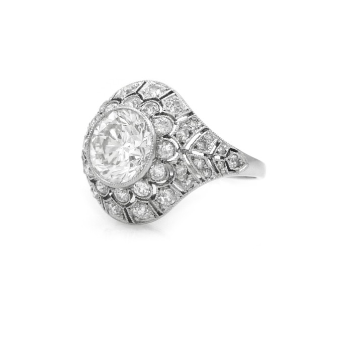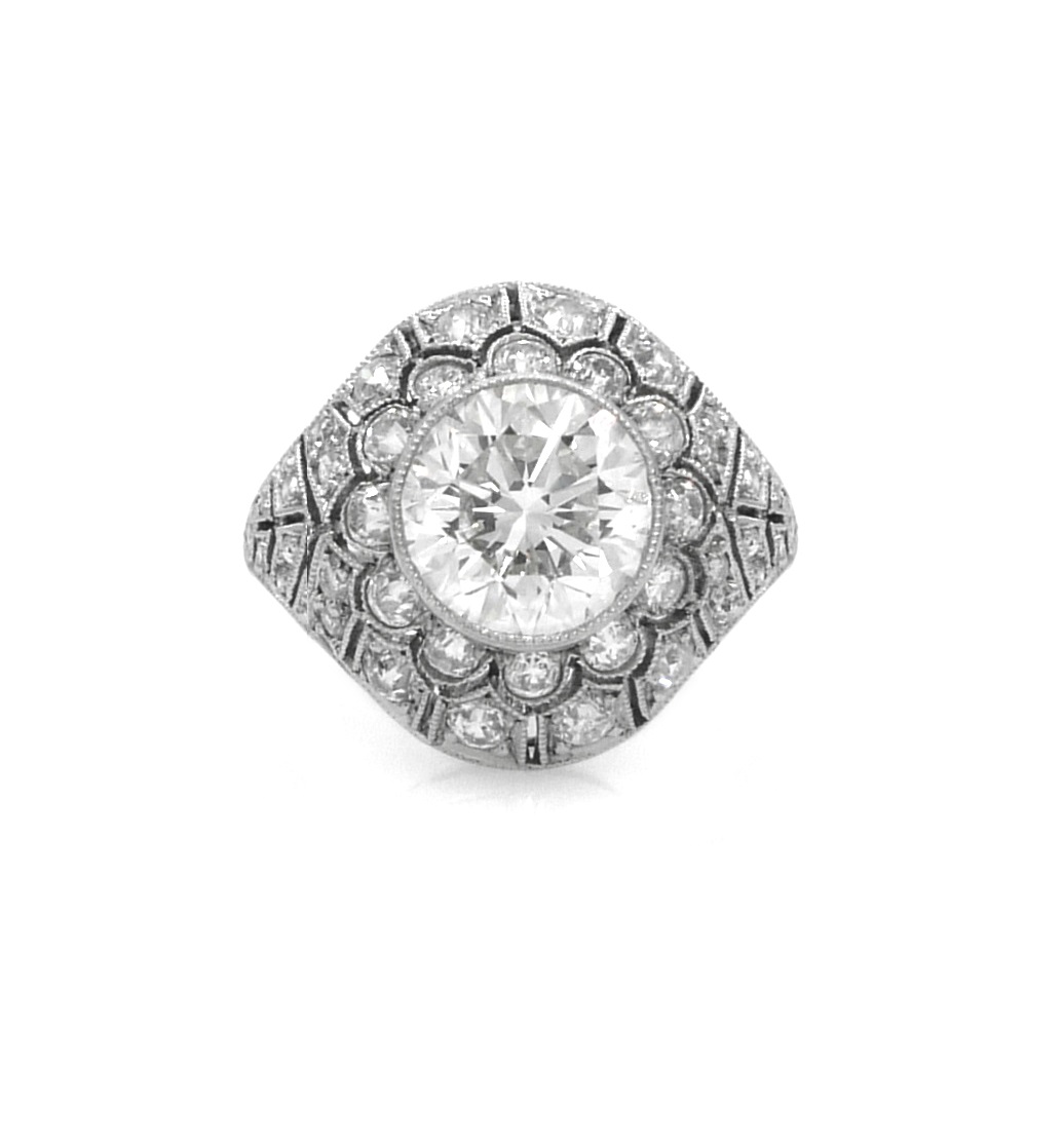 Sortija de platino con diamante de talla brillante de 1´80 quilates y diamantes de tallla brillante. Época Art Decó, circa 1930